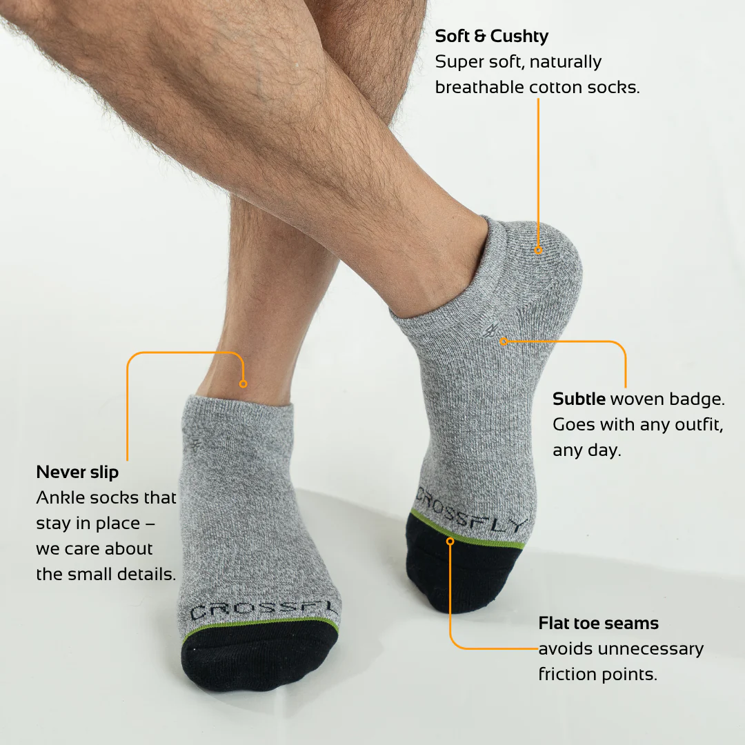 Pack of 4 pairs of Original Low Cut Socks. Included in pack are one of each colour: Black, White, Grey Marle, Navy Marle