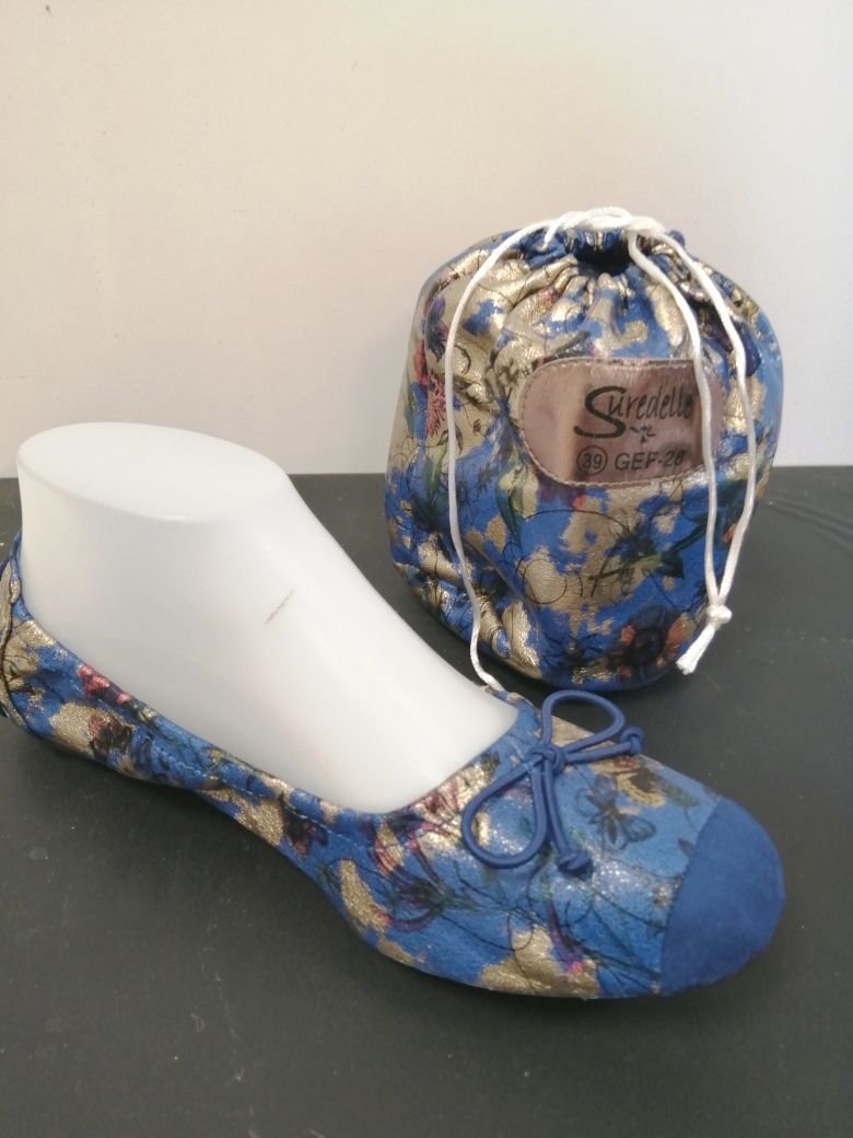 Ballerines souples et élégantes idéales pour porter avec une jupe et un top signés Poivre & Sel. Disponibles en plusieurs couleurs festives. Vendues avec leur pochette