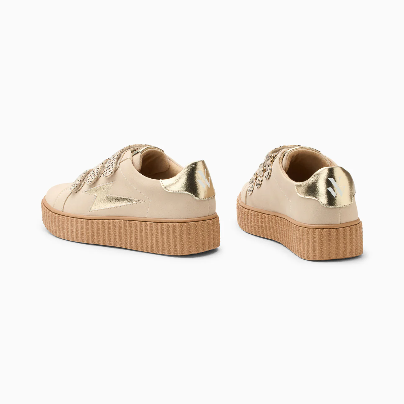 Baskets éclair Aby beige et or et à scratchs guépard