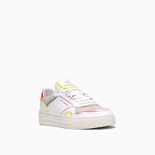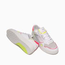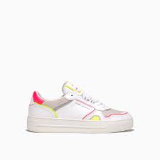Baskets conçues avec des matériaux de première qualité Made in Italy Tige en cuir et suède avec inserts réfléchissants Logo Crime London cousu sur les côtés Lacets plats en coton Semelle en caoutchouc cousue Les détails roses et jaunes donnent à la chaussure un look exclusif inspiré du monde du Basketball Ajustement fidèle à la taille
