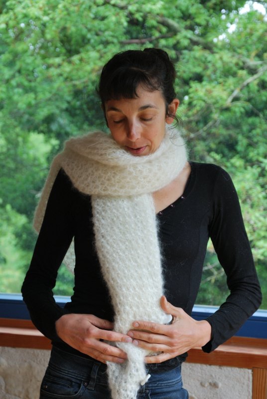 Cette étole, grâce à des boutons disposés de manière ingénieuse, pourra tout aussi bien se porter en poncho, qu’en écharpe ou en gilet. Agrémentant vos tenues d’hiver comme d’été, cette étole est un véritable nid douillet !