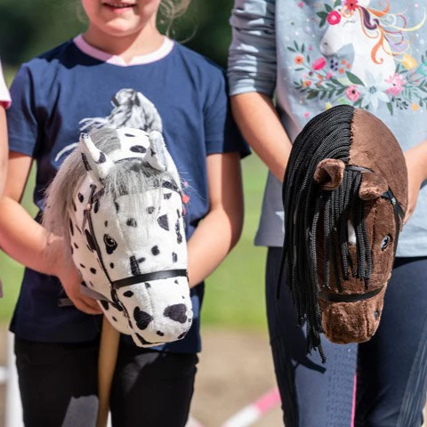 Une jolie tête de cheval en peluche montée sur un bâton et hop, c’est parti pour des heures de jeu entre copains.