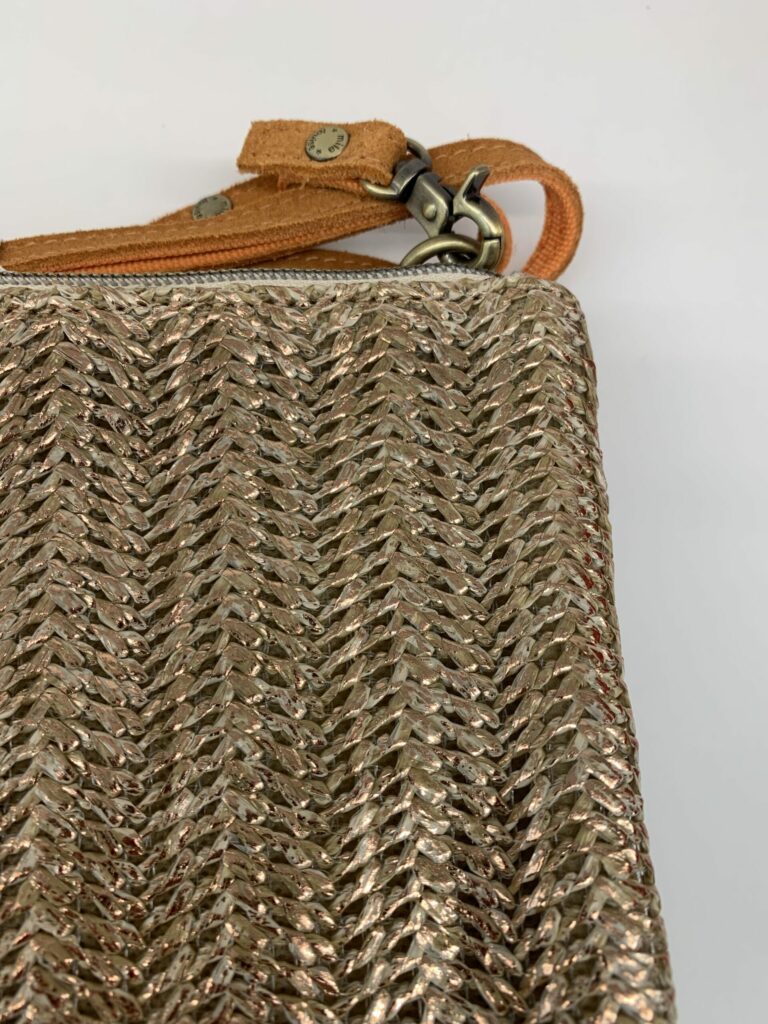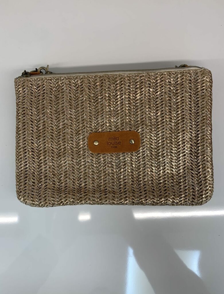 – Double pochette – Forme rectangulaire – Anneaux en métal – Bandoulière fine ajustable et détachable – Poche plaquée intérieur – Doublure – Dimensions : 25 x 17 x 2 cm