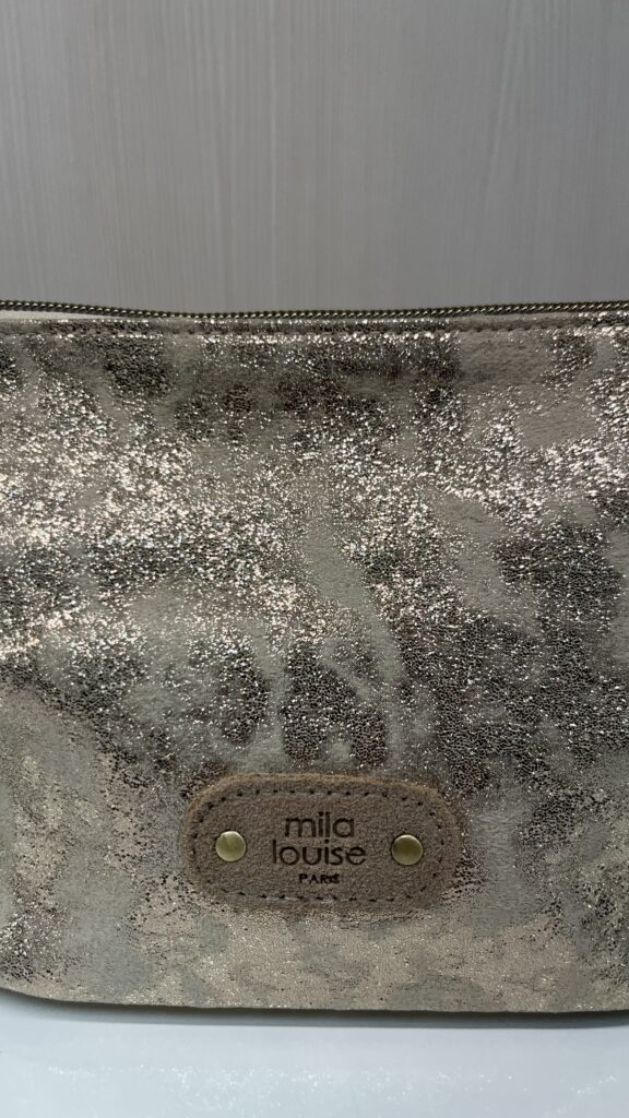 – Sac banane Mila Louise en croûte de cuir pailleté – 2 fermetures zippées – Sangle porté épaule – Chaînette décorative – Poche arrière à glissière – Housse de rangement Dimensions : 17 x 29 x 5 cms