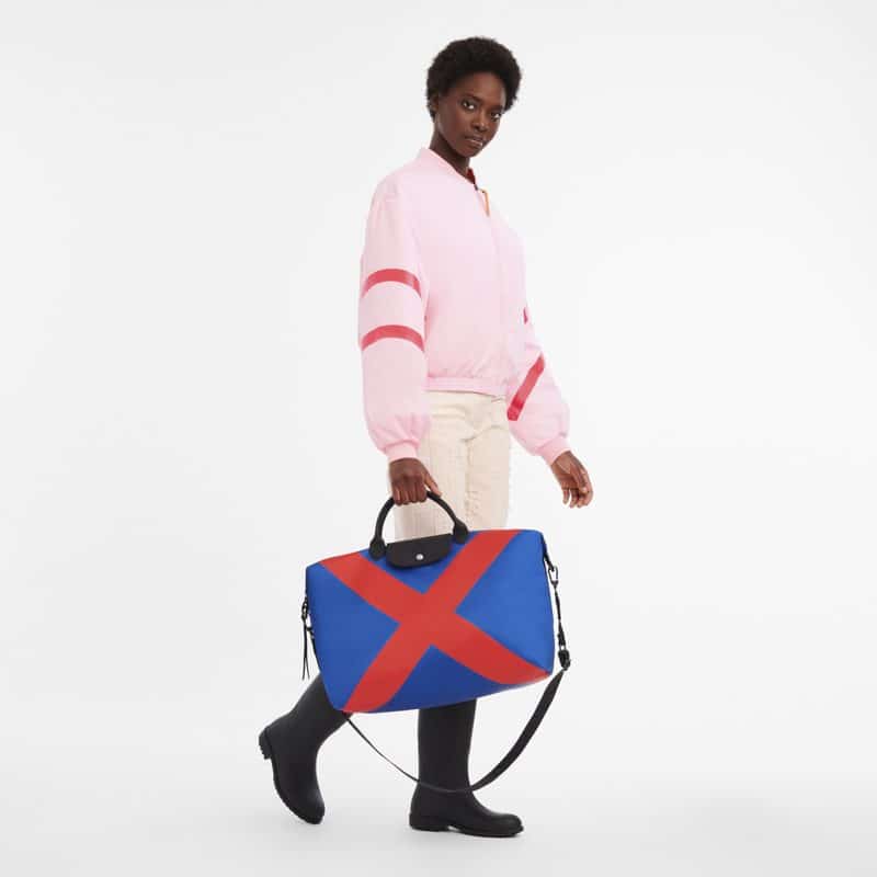 Sac de voyage Longchamp Le Pliage Collection Casaque bleu/rouge