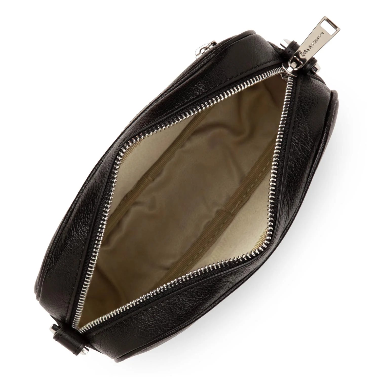 Ce sac trotteur est confectionné de cuir de vachette finition métallisée. Il comporte une poche principale ainsi qu’une poche extérieure zippée. Il se porte à l’épaule ou croisé. Taille 21.0×14.0×6.0 cm Fermeture Zippée Matière Cuir de vachette finition métallisée Doublure Textile Finition Métal argenté brillant Type de portée Porté travers, porté épaule Bandoulière Amovible, réglable REF : 480-041-NOIR