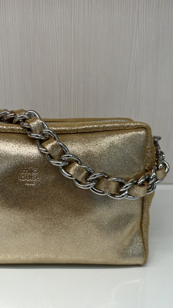 Sac bandoulière en cuir by Mila Louise pour Femme. – Sac besace Mila Louise – Anse en chaîné ornée de cuir tressé – Bandoulière porté épaule ou croisé – 2 compartiments zippés – 2 poches intérieures à glissière – Housse de rangement Dimensions H 14 x L 22 x P 7 cm